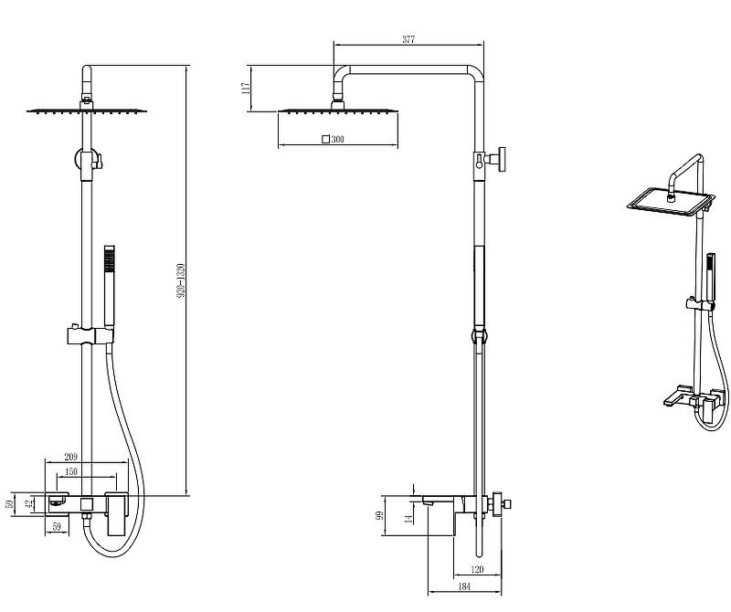 Душевая штанга регулируется по высоте: 920-1320 мм.