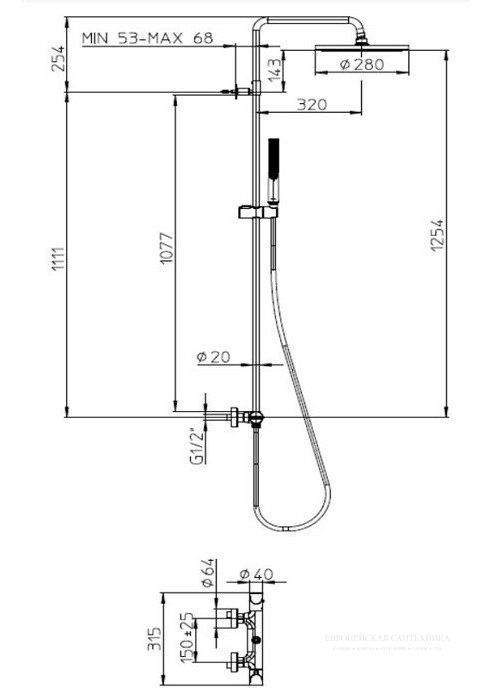 • Размер верхнего душа, см: