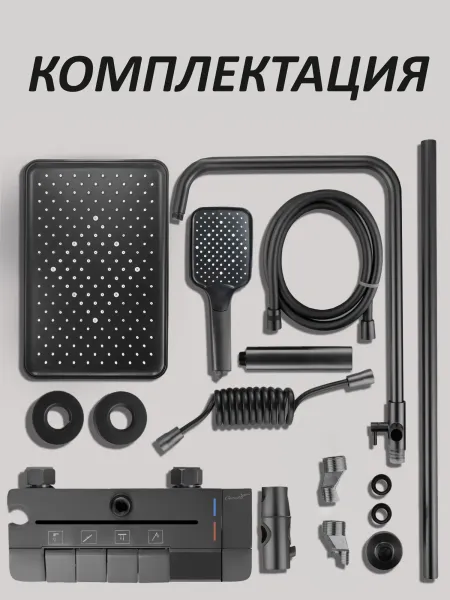 Настенный монтаж производится быстро. Подключение к водопроводу стандартное – ½ дюйма.В комплект входят верхний душ, гигиенический душ, держатель для ручной лейки, ручная лейка, верхний душ, душевая штанга, кронштейн для верхнего душа, смеситель, отражатели.Внимание! Производитель оставляет за собой право вносить изменения в конструкцию и комплектацию моделей без предварительного уведомления!