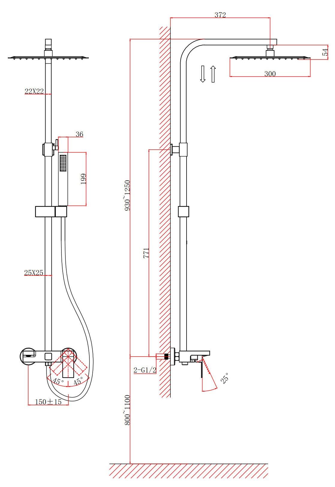 • Размер верхнего душа, см: