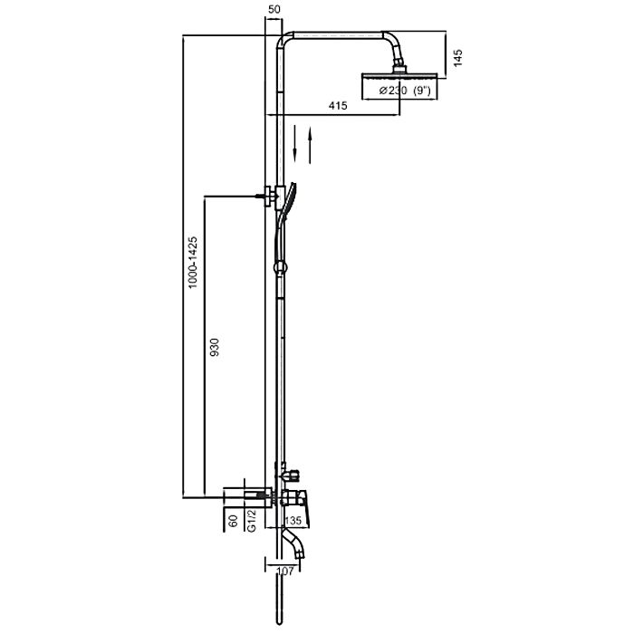 Размеры (см.):Диаметр штанги душевой стойки - 25 мм.
