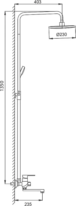 Вылет верхнего душа, см