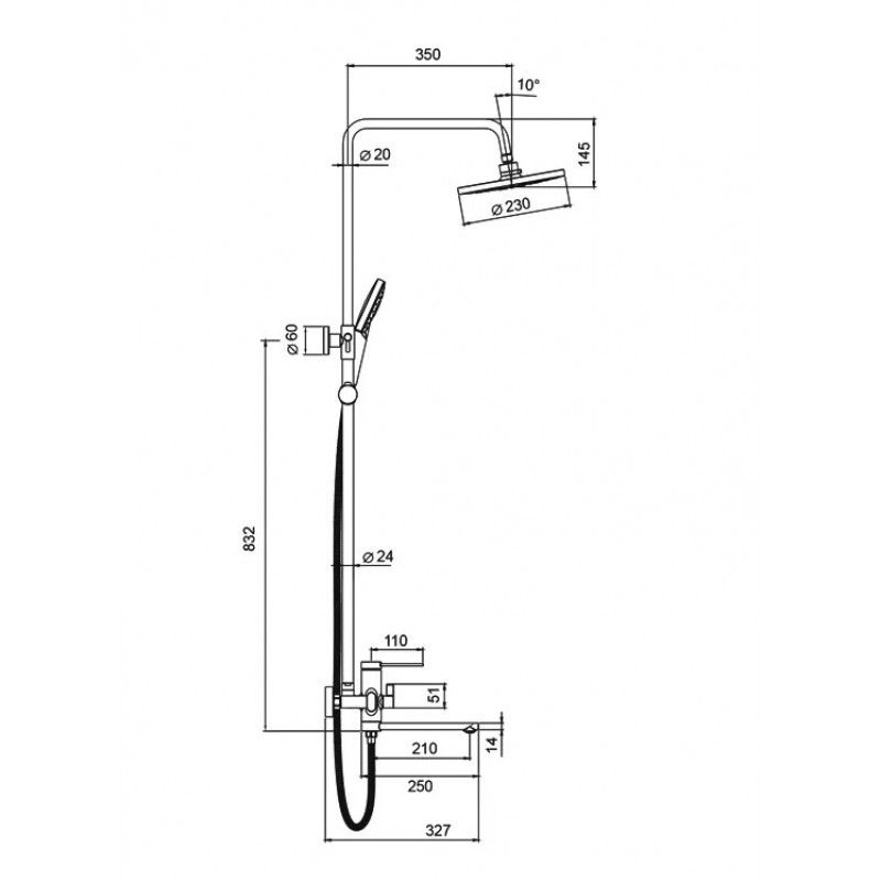 • Размер верхнего душа, см: