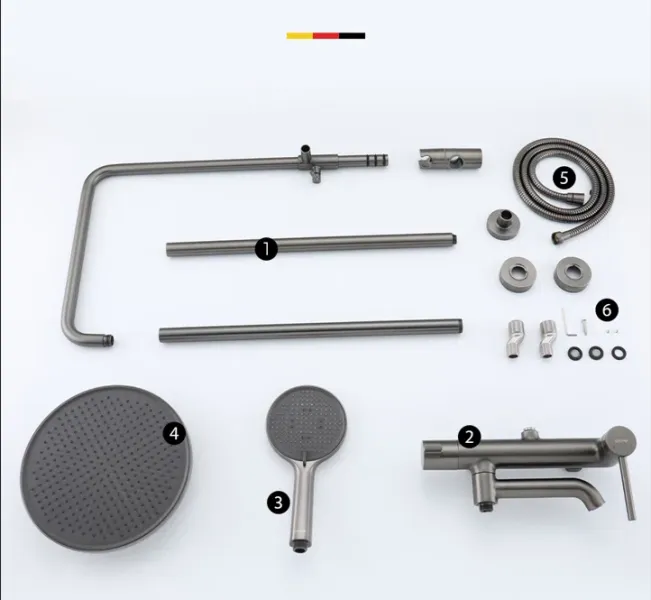 Основными компонентами душевой системы являются тропический душ, кран, душевая стойка. Смеситель имеет несколько режимов работы, что позволяет выбрать оптимальный режим для каждого пользователя. Короткий излив делает использование системы более удобным и практичным. Цвет смесителя подчеркивает стильность и минимализм душевой системы. Также в комплекте имеется душевая лейка, которая может использоваться вместо тропического душа. Душевая система с тропическим душем надежно и безопасно фиксируется на душевой стойке, что обеспечивает максимальную устойчивость и надежность. Стойка для душа получила Аэратор NEOPERL и таким образом душевая система с тропическим душем получает постоянный поток через него, поэтому экономия воды составляет более чем 30%.