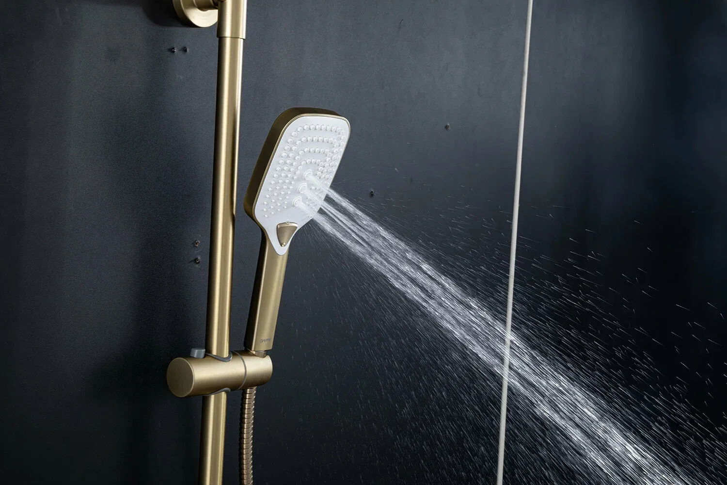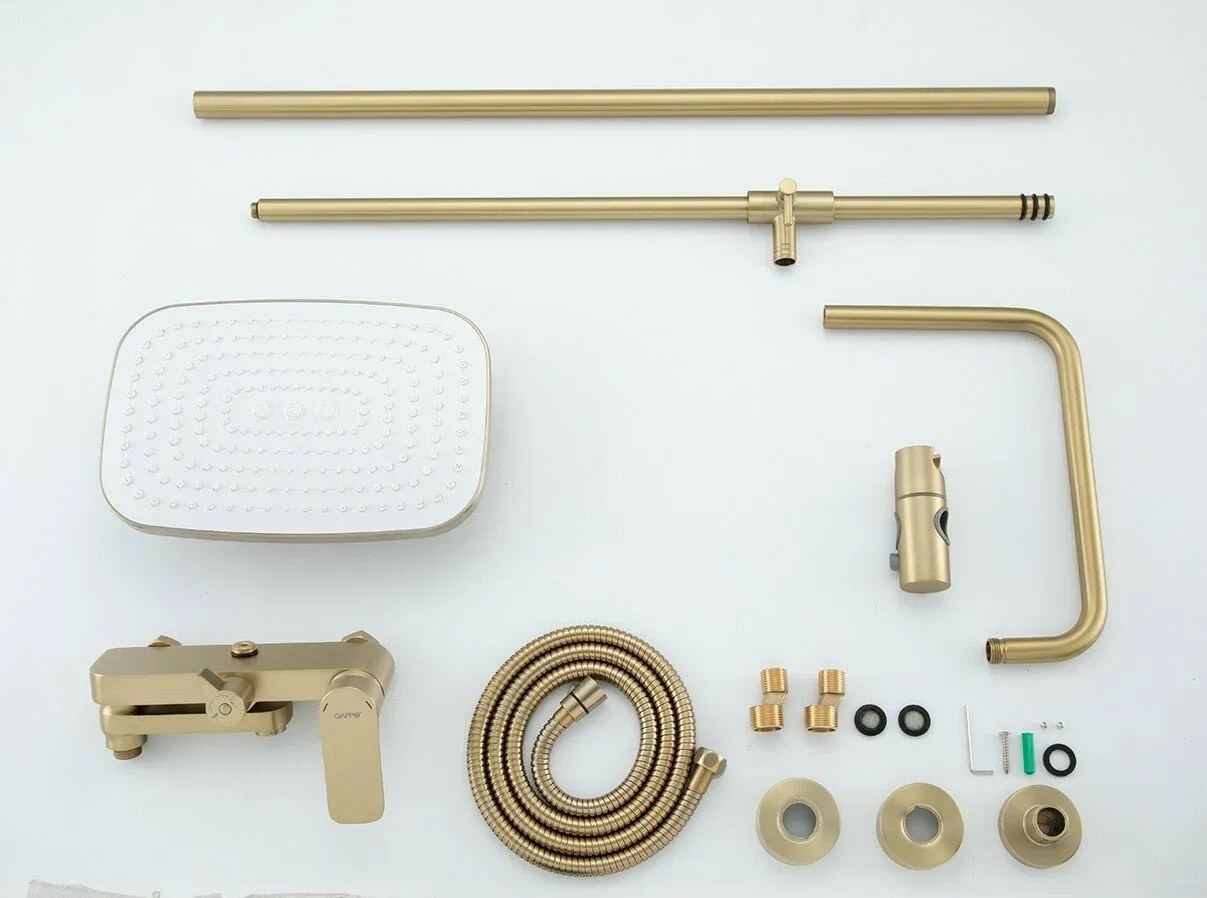 Современная душевая система серии G2448-3 GAPPO (гаппо) выполнена из латуни в цвете золотой сатин, имеет глянцевую поверхность. Комплектуется тропическим душем.