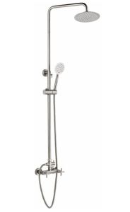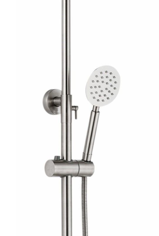 Душевая система Haiba.Изготовлена из высококачественной нержавеющей стали.Прекрасный тропический душ.Без излива для наполнения ванны.Душевая штанга регулируется по высоте от 88,5 см до 153,5 см.