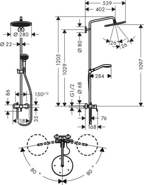 - размер душевого диска: 280 мм