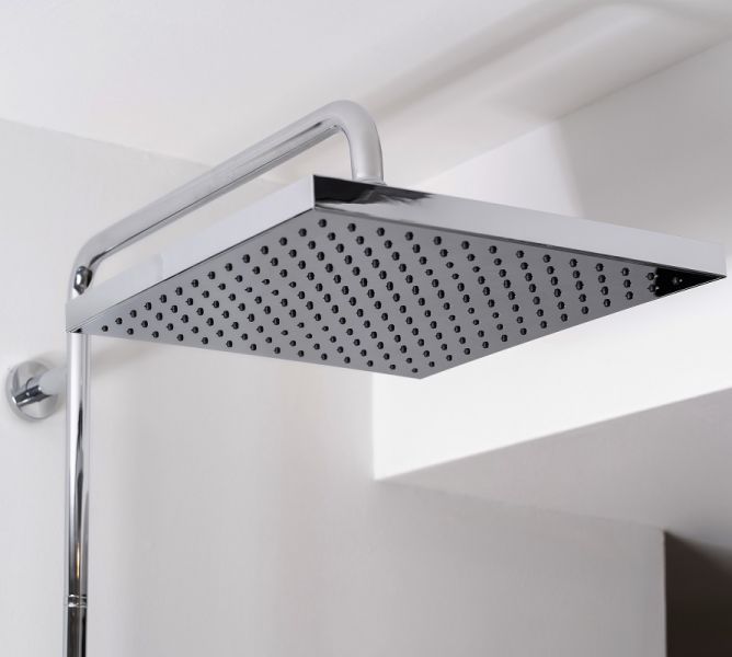 Геометричный дизайн верхнего и ручного душа дополнит интерьер любой ванной комнаты