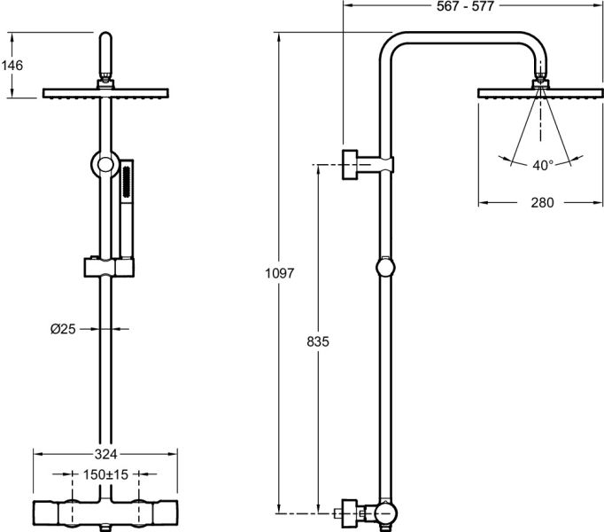 Душевая стойка Jacob Delafon BRIGITTE E32850-CP термостатическаяКОЛЛЕКЦИЯ :BRIGITTE