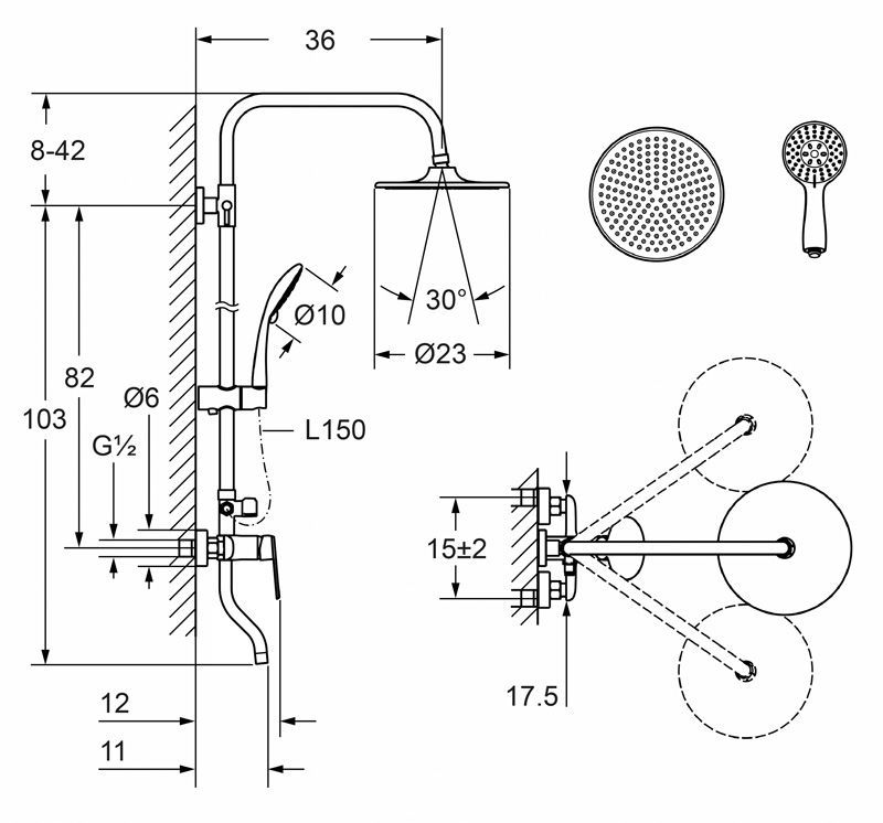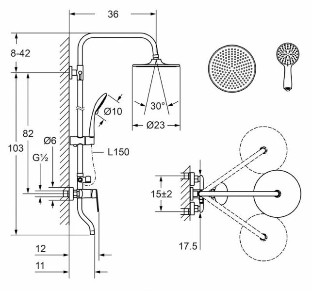 • Размер верхнего душа, см 21,5