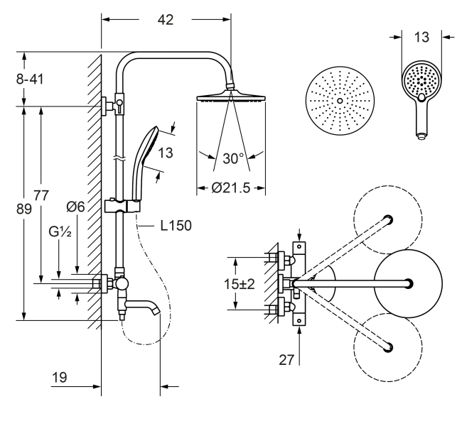 Размер верхнего душа, см 21,5