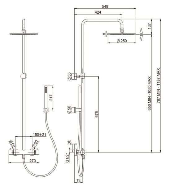 • Размер верхнего душа, см: