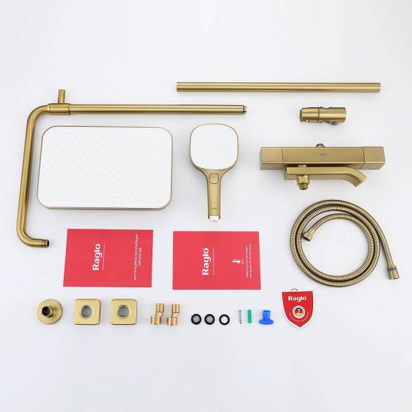Душевая стойка Raglo R22.26.03 с термостатом золотой сатин
