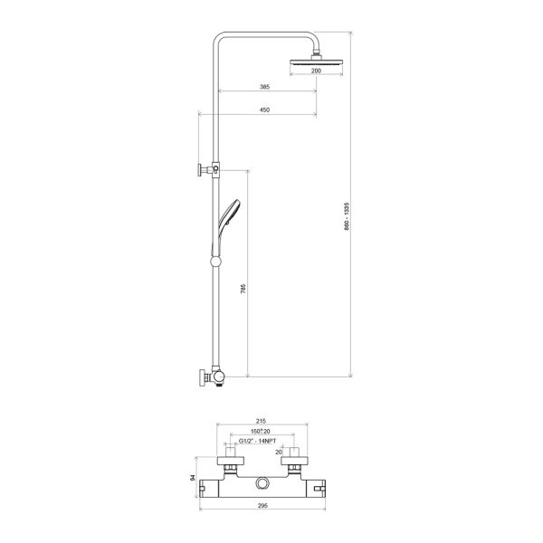 TE 091.00/150 Позволяет пользователю с любым ростом мгновенно подстроить высоту лейки под свои предпочтения а также с легкостью отрегулировать высоту верхнего душа и угол его наклона. Делается все это легко и просто одним движением руки. В набор с душевой штангой входит термостатический смеситель, увеличивающий релаксацию в душе и предотвращающий случайные ожоги горячей водой.