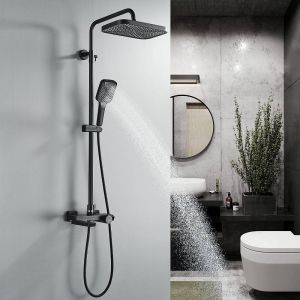 Душевая система с термостатом Rose R1896H, черный.Монтаж: настенный.Стилистика дизайна: современный стиль.Управление: термостат.Размер верхнего душа: 31,5x21.Форма верхнего душа: прямоугольная.
