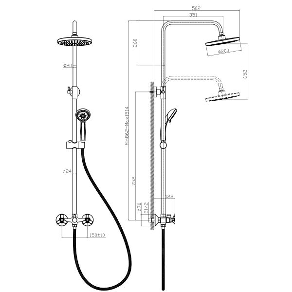 Размер верхнего душа: 20 см