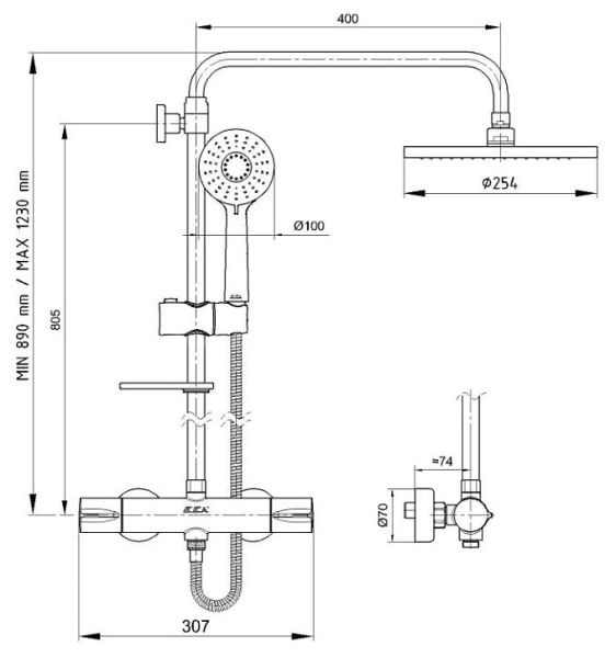 Душевая стойка E.C.A используется в ванных комнатах. Модель оснащена круглыми верхним душем и лейкой. Термостатический картридж обеспечивает поступление воды заданной температуры. Изделие выполнено из латуни, которая отличается прочностью, долговечностью и устойчивостью к перепадам температуры.Дополнительные характеристики: