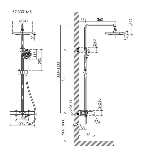 Душевая стойка SANCOS Game для душа и ванны с термостатическим смесителем, изливом, верхним и ручным душем, цвет черный матовый, арт. SC3001MB