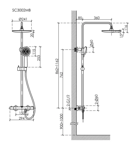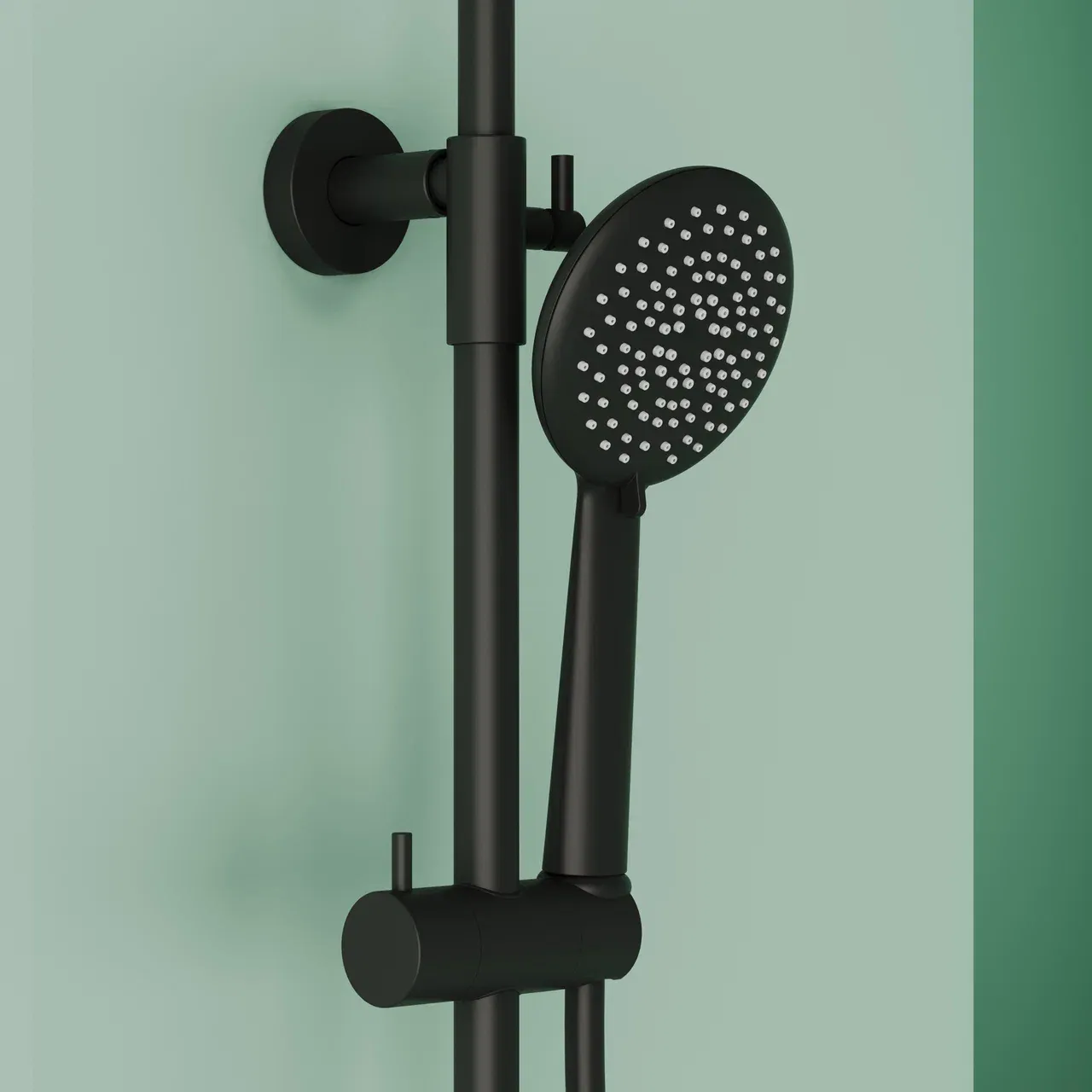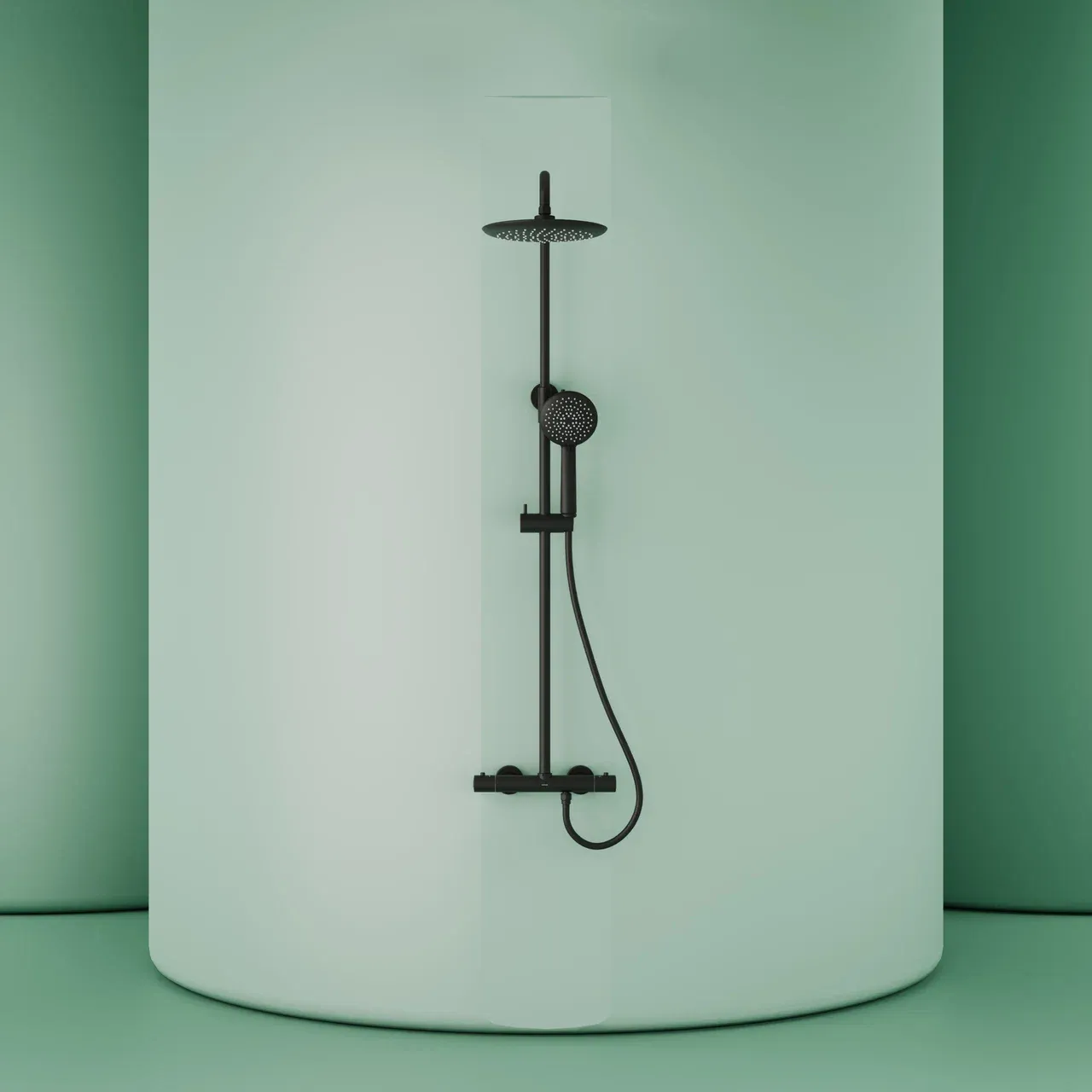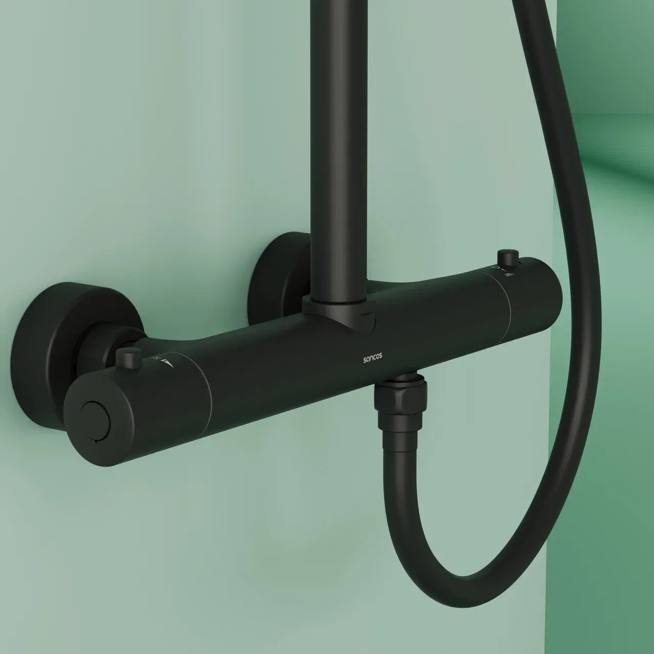 Душевая стойка SANCOS Game для душа с термостатическим смесителем, верхним, ручным душем и шлангом в комплекте, цвет черный матовый, арт. SC3002MB
