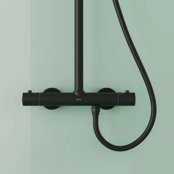 Душевая стойка Sancos Game SC3002MB с термостатом чёрный матовый