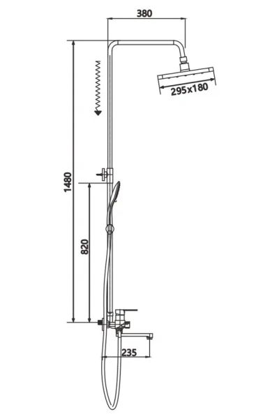 Душевая система Shevanik S8136H, черный.Количество режимов струи: 3.Размер верхнего душа: 29,5x18 см.Управление: рычажное.Излив для наполнения ванны: да.