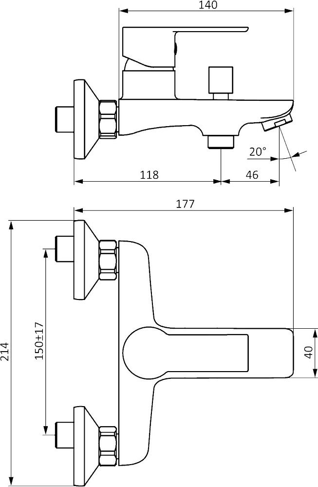 Смеситель для ванны с душем STWORKI Хельсинки HFHS10000 хром однорычажный, настенный, латунь, с аэратором