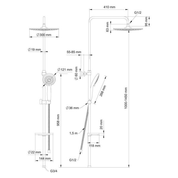 - ручной душ, с трехрежимной лейкой;