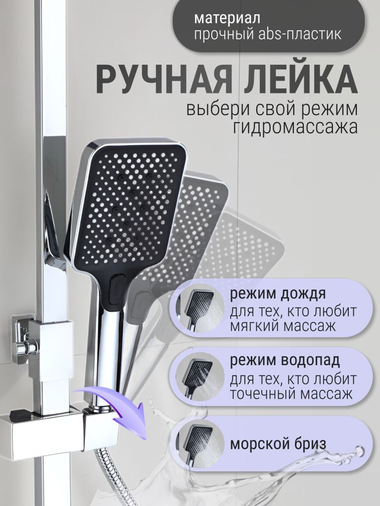 Душевой комплект содержит все необходимое для монтажа. Кроме того, наша душевая стойка хром имеет простой и быстрый монтаж, благодаря чему вы сможете установить ее самостоятельно без привлечения специалистов. Это позволит сэкономить время и деньги, а также получить удовольствие от процесса создания своего уютного уголка в ванной комнате.