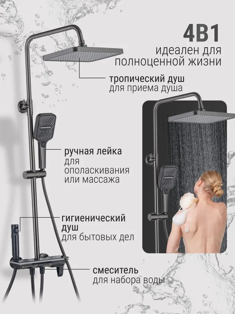Душевая система с тропическим душем Vexorus - это система, которая превратит вашу ванную комнату в настоящий уголок роскоши и комфорта. Изделие выполнено в графитовом цвете, что позволяет гармонично его использовать в современном интерьере.