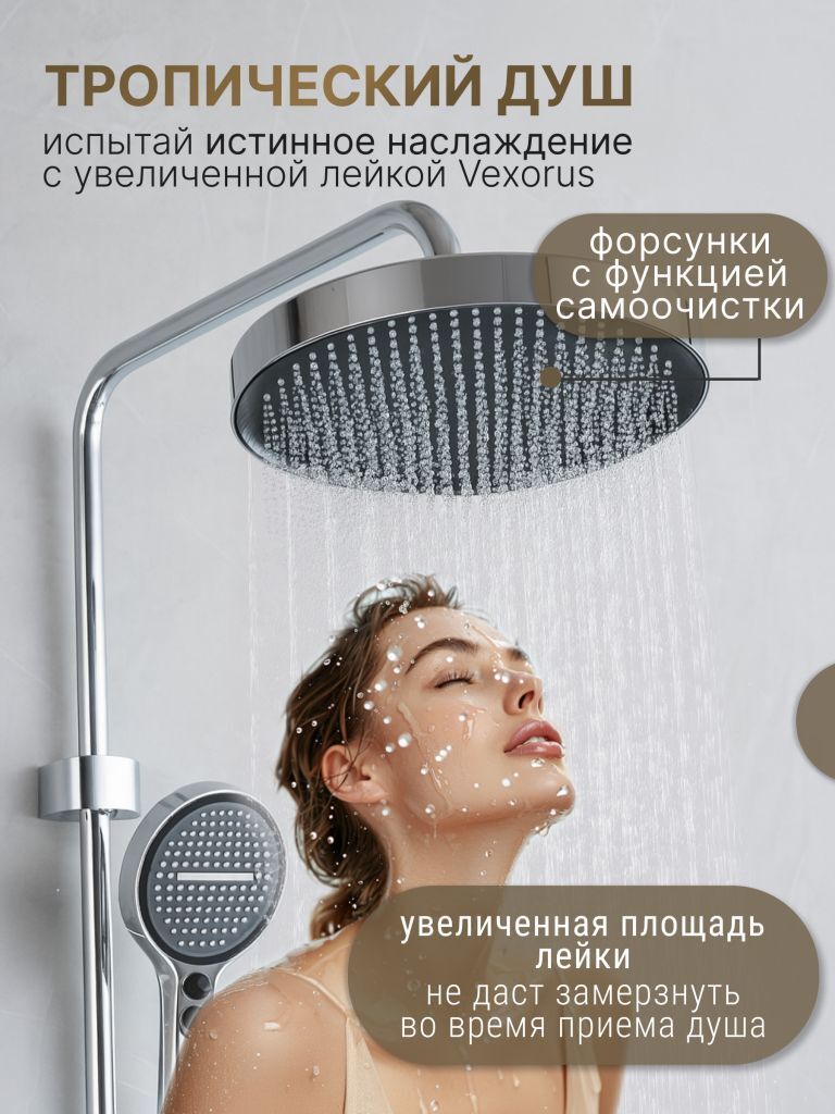 Душевая система с тропическим душем Vexorus - это система, которая превратит вашу ванную комнату... Подробнее