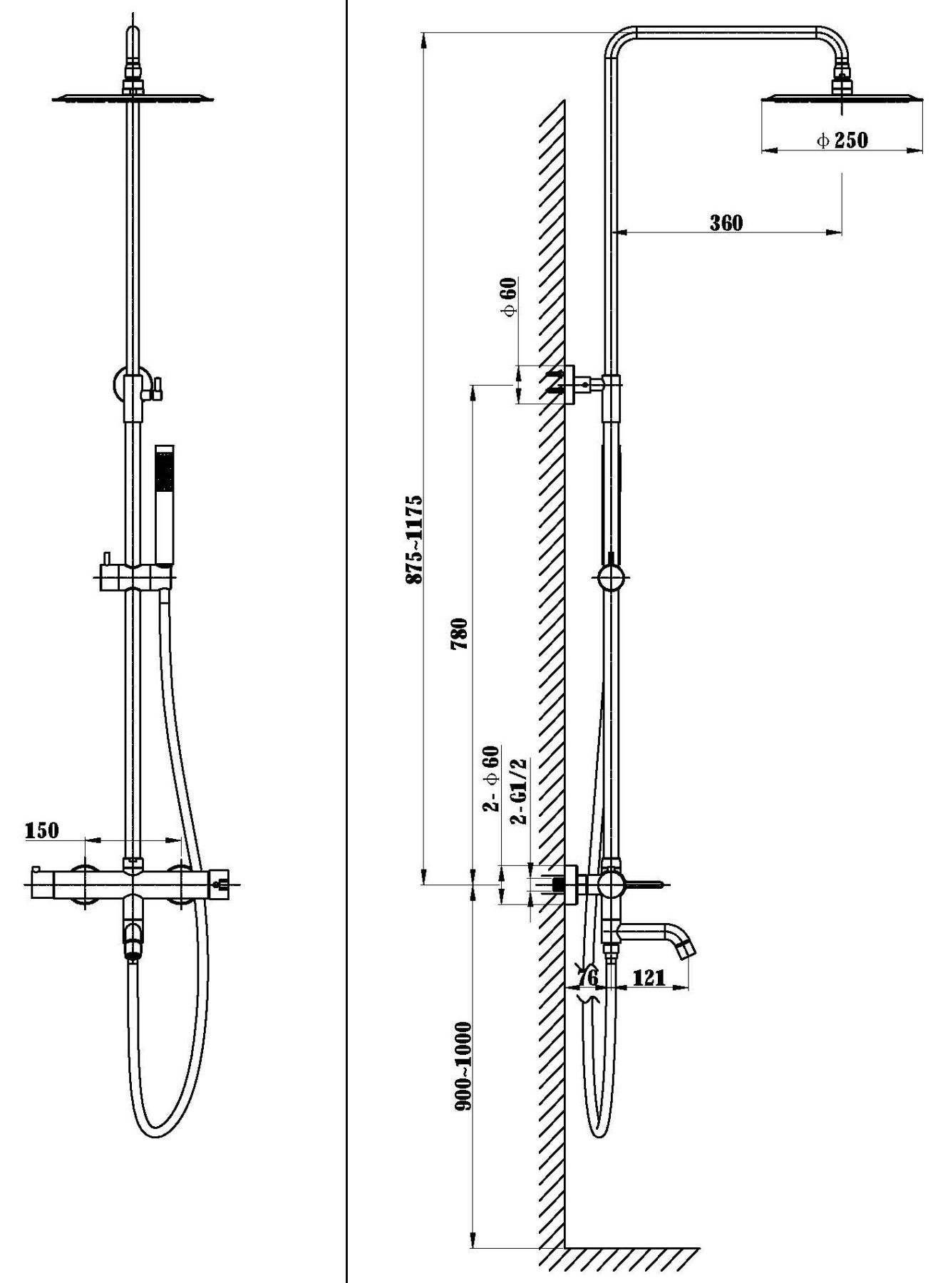 • Размер верхнего душа, см: