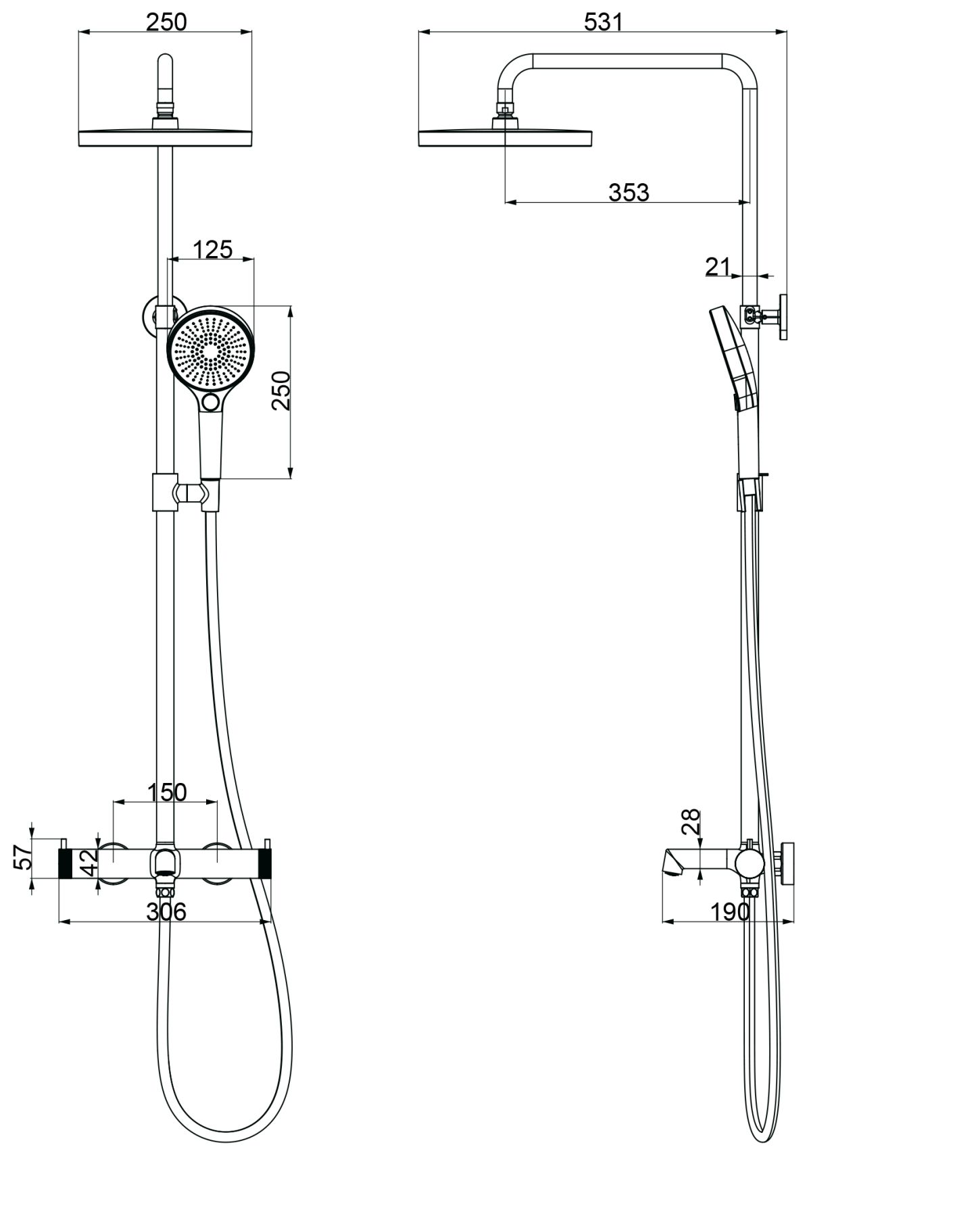 • Размер верхнего душа, см:
