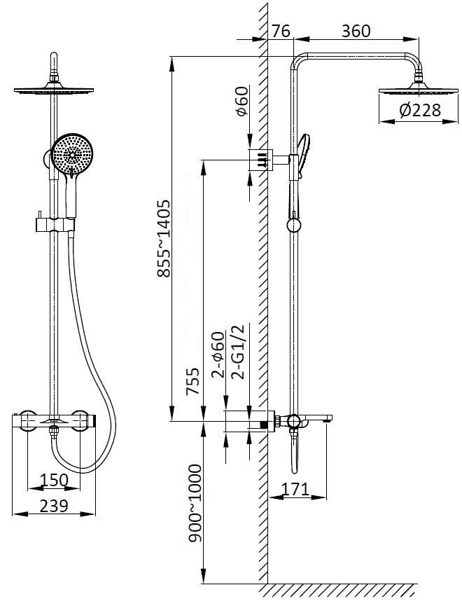 Душевая стойка Vincea Rondo VSFS-1R1GM, вороненая сталь