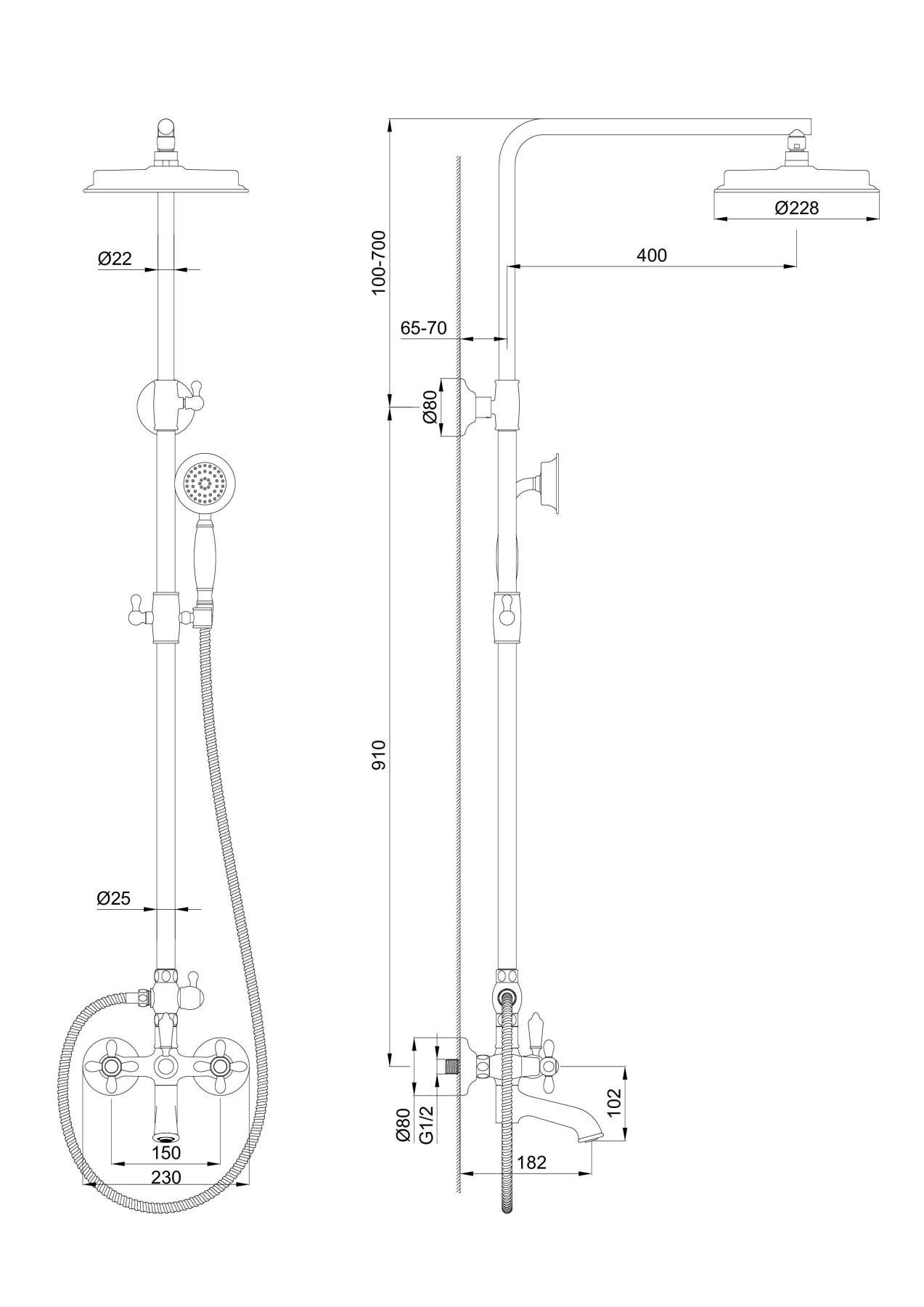 Душевая стойка Wonzon & Woghand Retro WW-88739020-CR хром