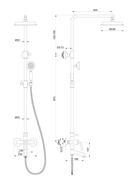 • Размер верхнего душа, см: