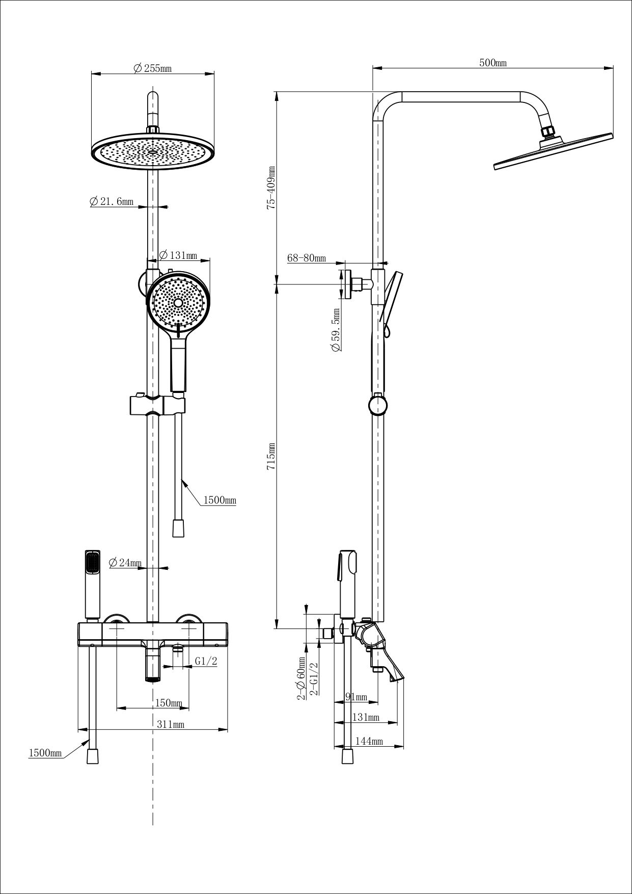 • Размер ручного душа, см: