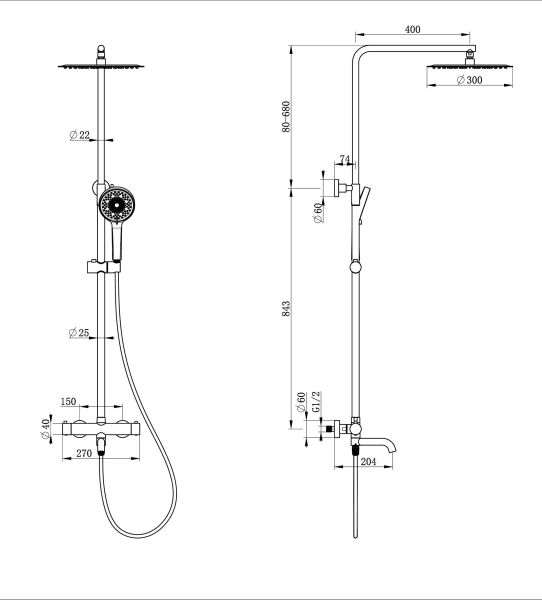 • Размер верхнего душа, см: