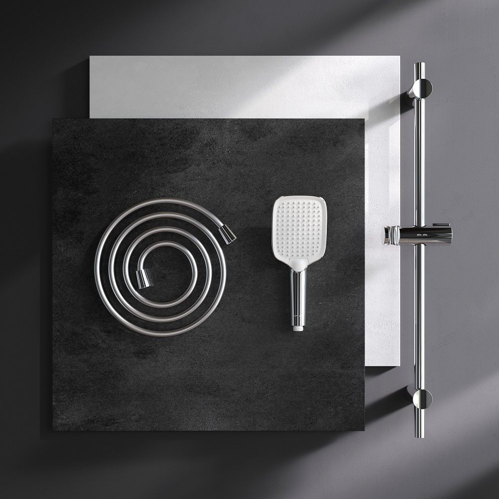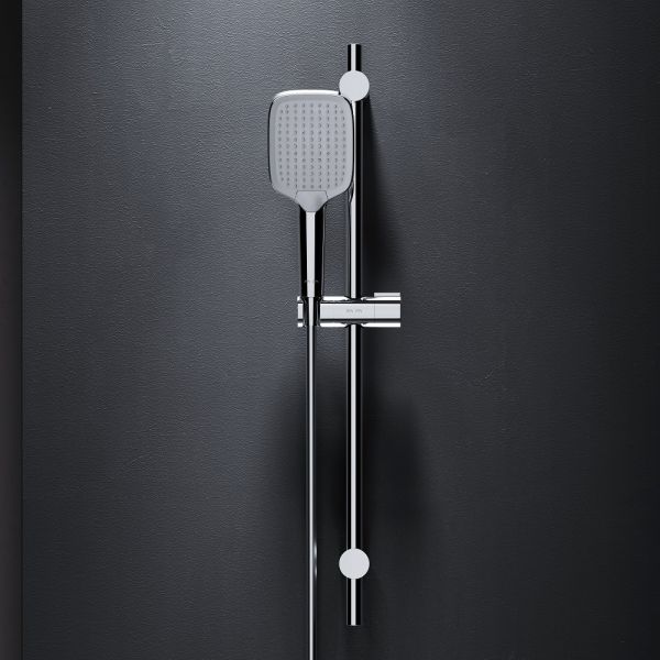 Каждая деталь продумана для вашего комфорта: шарнирное соединение надежно защищает душевой шланг от перекручивания, обеспечивая свободу движений, а регулируемый в трёх плоскостях держатель позволяет точно настроить положение ручного душа под ваши предпочтения. Невероятно легкая очистка душевых форсунок благодаря функции Rub&Clean.