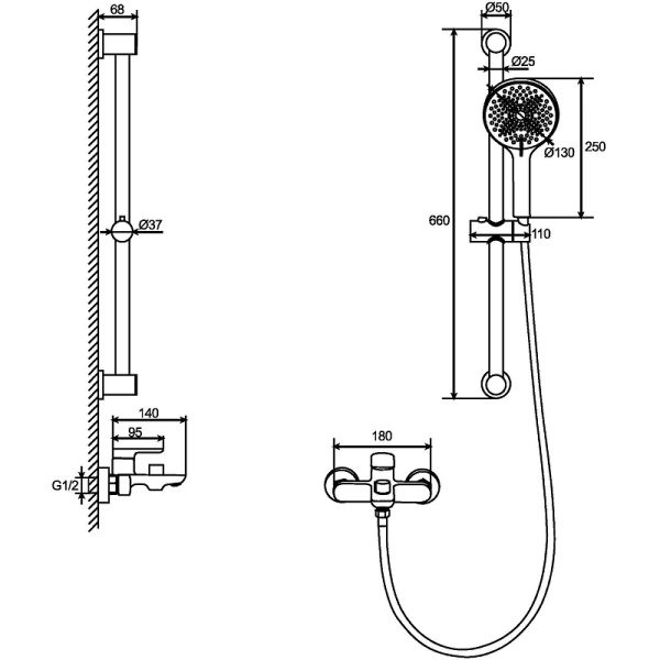 Длина душевого шланга: 1500 мм.