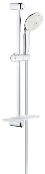 Душевой гарнитур Grohe Tempesta New 28593002 Хромвключает в себя: ручной душ (28 578)душевая штанга, 600 мм (27 523) , душевой шланг Relexaflex 1750 мм 1/2" x 1/2" (28 154) , Полочка GROHE EasyReach (27 596) , GROHE DreamSpray превосходный поток водыGROHE StarLight хромированная поверхностьс системой SpeedClean против известковых отложенийВнутренний охлаждающий канал для продолжительного срока службыShockProof силиконовое кольцо, предотвращающее повреждение поверхности при падении ручного душа , может использоваться с проточным водонагревателем