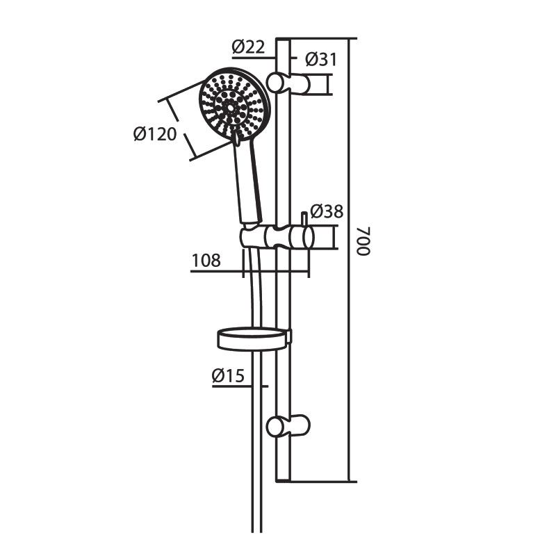 Душевой гарнитур RedBlu by Damixa Palace One 914100000 штанга 700 мм