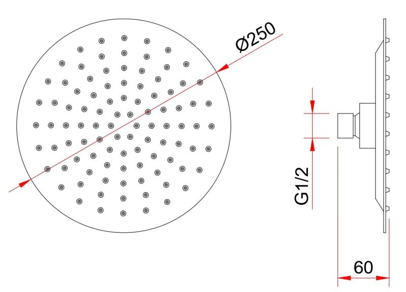 Размер верхнего душа, см:25