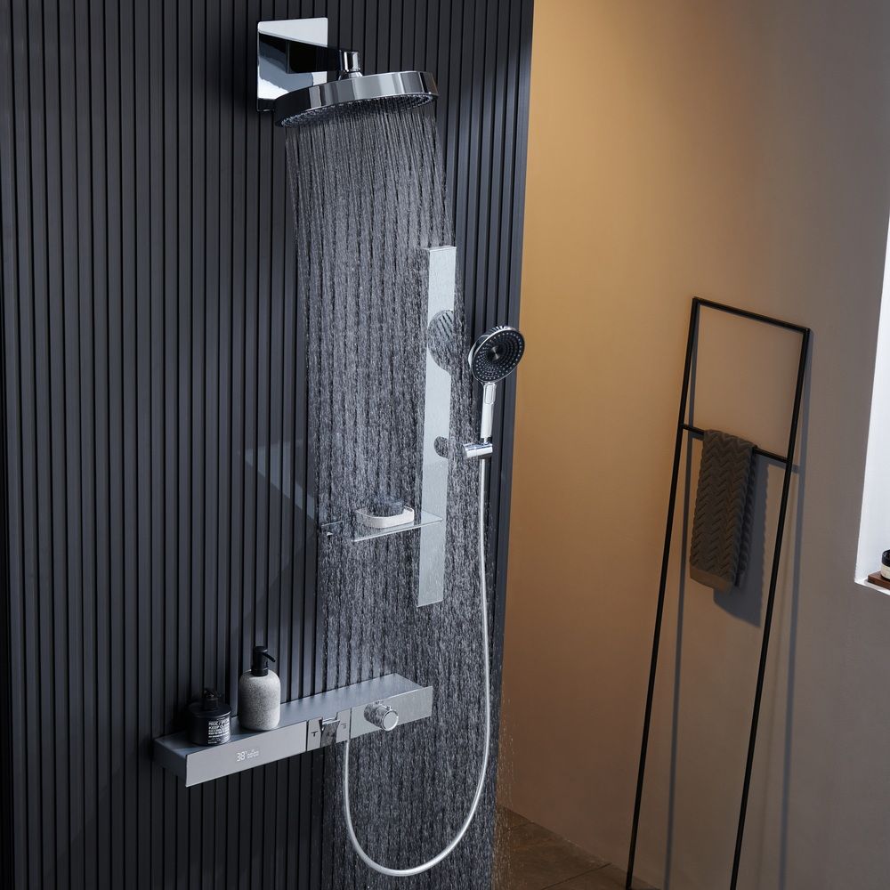 Корпус душевой системы изготовлен из высококачественной латуни, что гарантирует ее прочность и долговечность. Кроме того, она оснащена LED-дисплеем, который позволит вам легко контролировать температуру воды и обеспечит максимальный комфорт и безопасность при использовании, что особенно удобно для семей с маленькими детьми или пожилыми людьми.