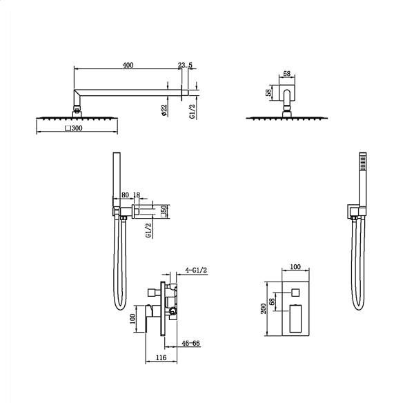 • Размер верхнего душа: 30 см