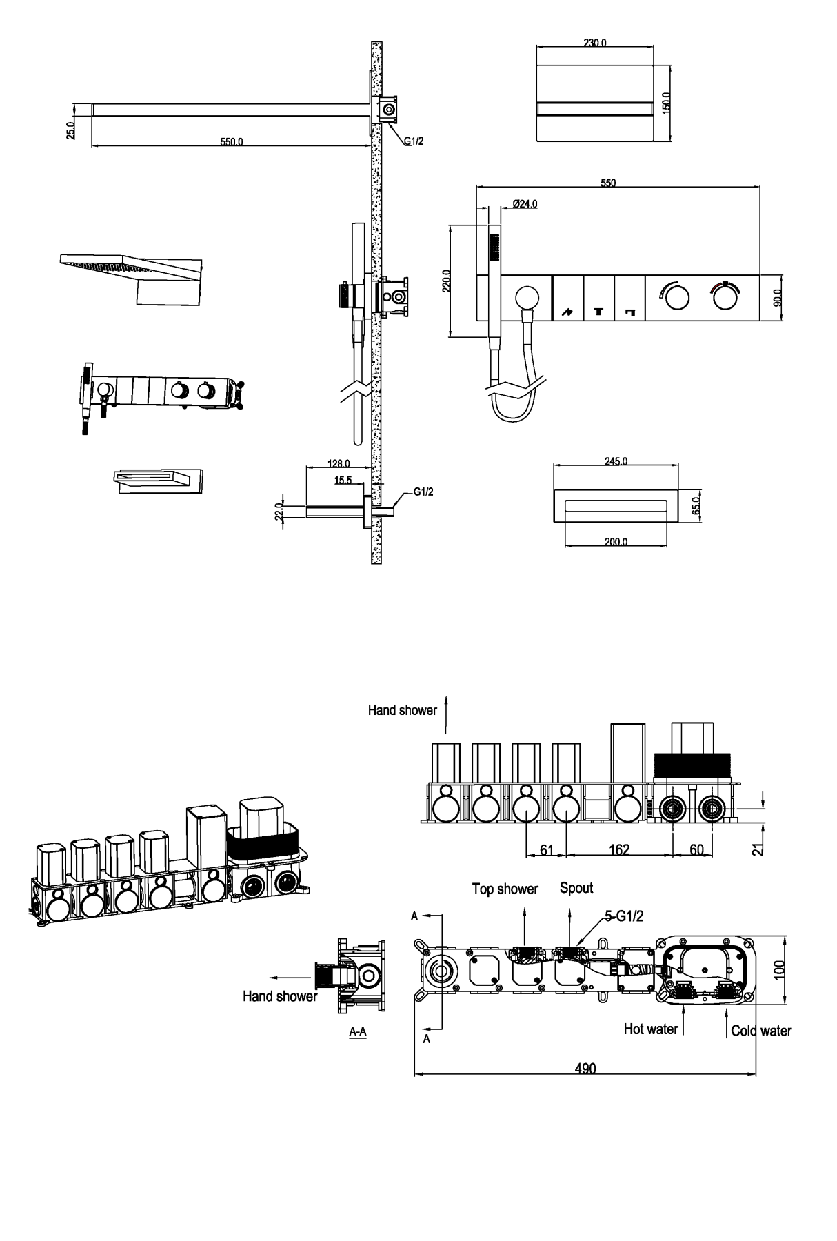 Ультра плоский дизайн, инновационное управление режимами позволит создать идеальный комфорт. Верхний душ размером 550мм*230мм с функцией тропического душа. Форсунки soft-silicone с функцией антикальк и комфортной очисткой. Магнитный держатель лейки Каскадный излив как дополнительная опция. Картридж Sedal, переключатели Neoperl, термостат Vernet (Франция).