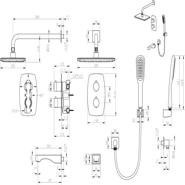 - Подключение для душевого шланга