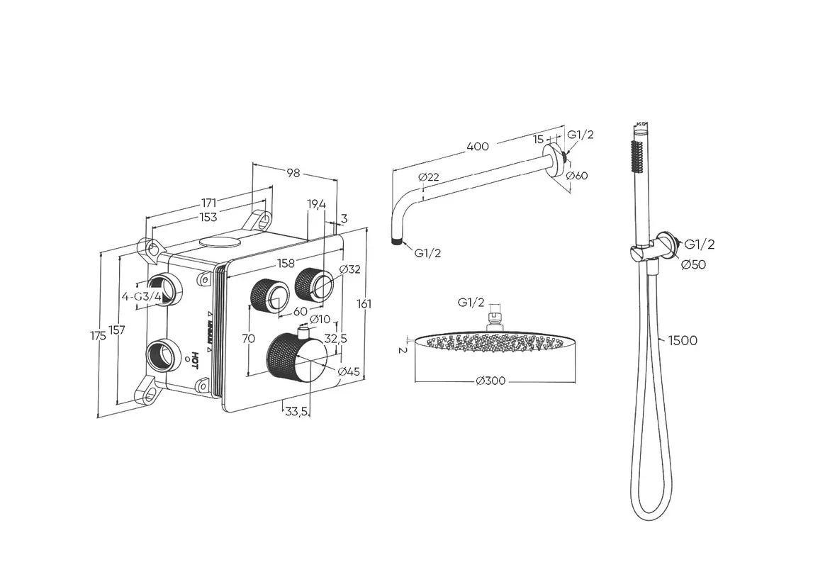 Душевой комплект Milleau Tissage TERMO 2SBIT/801Q-GB черный