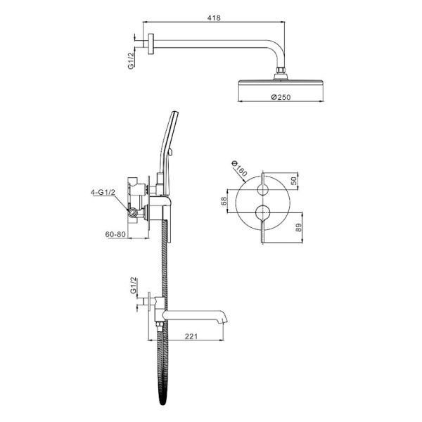 Душевой комплект Raglo R20.27.03 золотой сатин