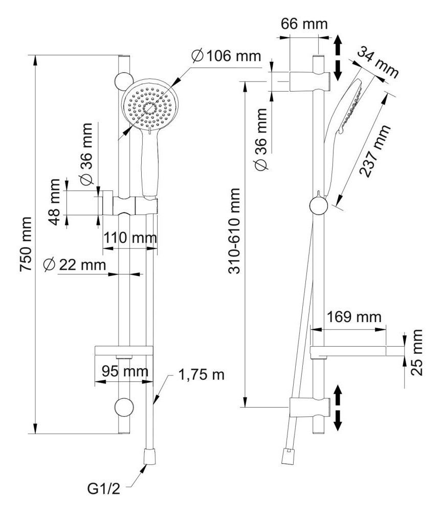 - ручной душ с 5-режимной лейкой;