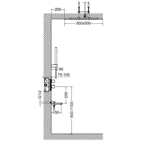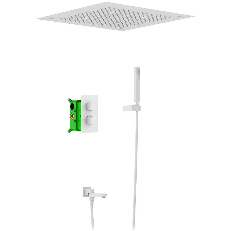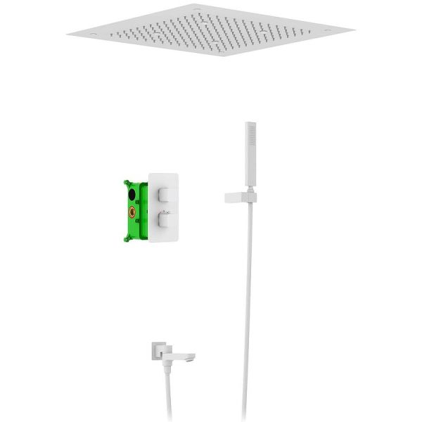 • Душевая система скрытого монтажа, с термостатом с квадратной лейкой (латунь) в стиле модерн